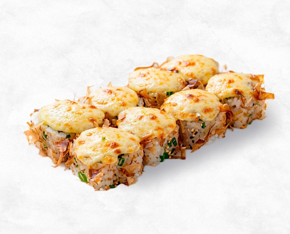 Состав тунец, огурец, сливочный сыр, майонез, сыр гауда, стружка тунца